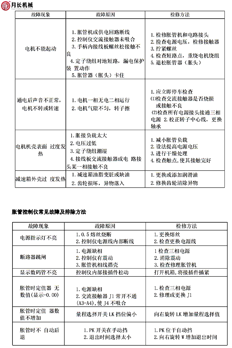 电动胀管机常见故障及排除方法